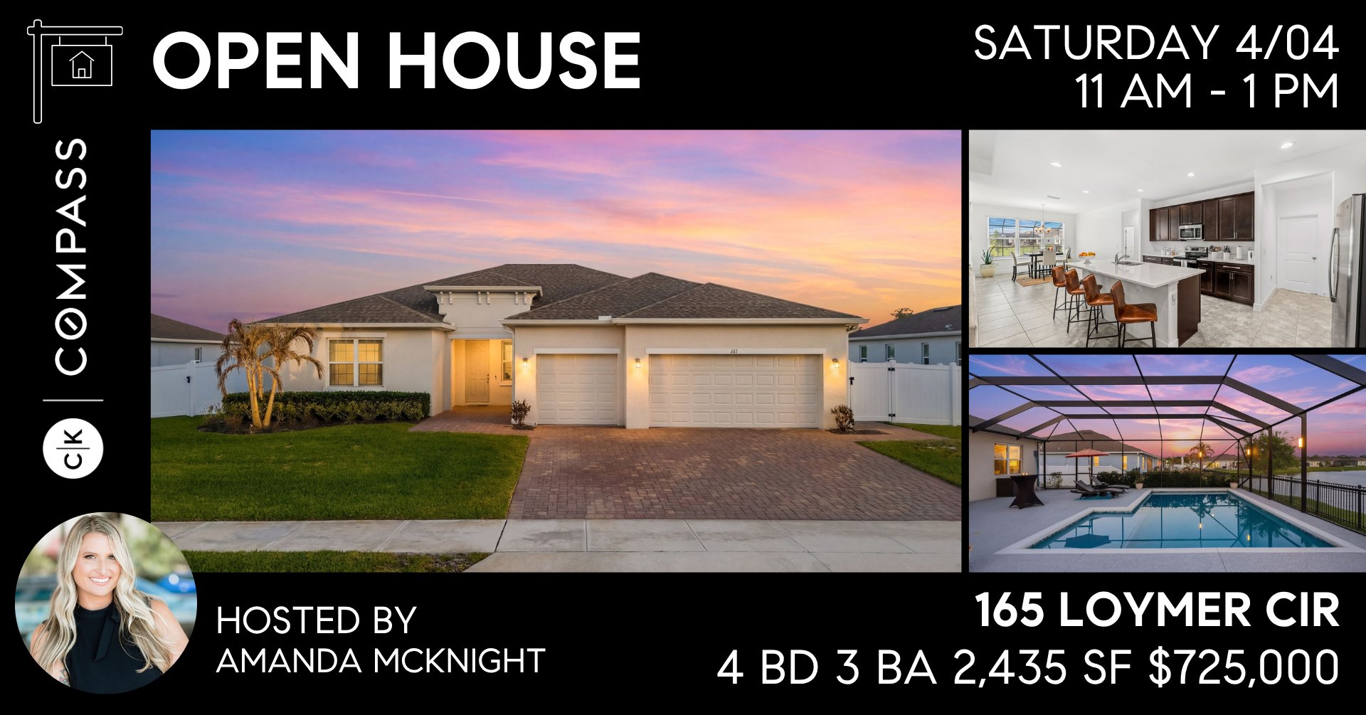 Details: 2023-built lakefront home in Savannah Landing with 4 bedrooms, a 3-car garage, and a new 2024 screened pool and expansive deck.