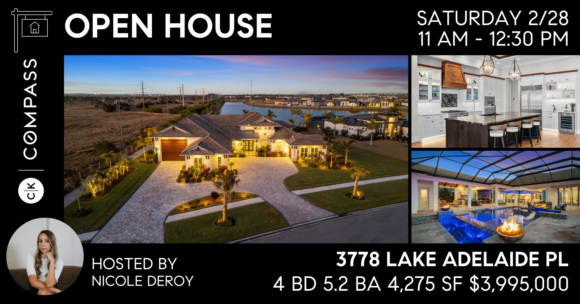 Details: Grand scale & resort living combine in this 4,222 sq ft custom home on a .70-acre corner lot with breathtaking lake & preserve views.