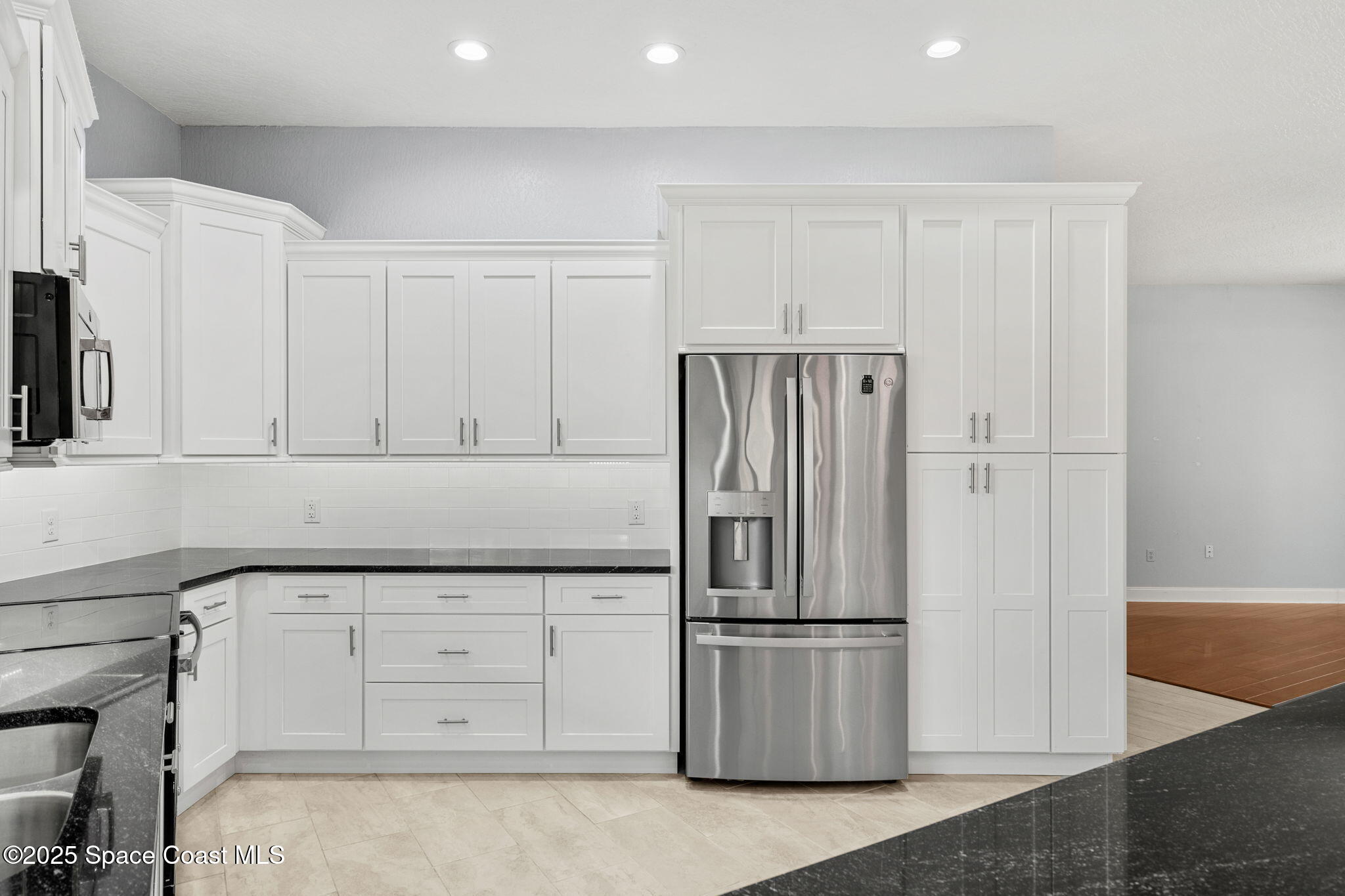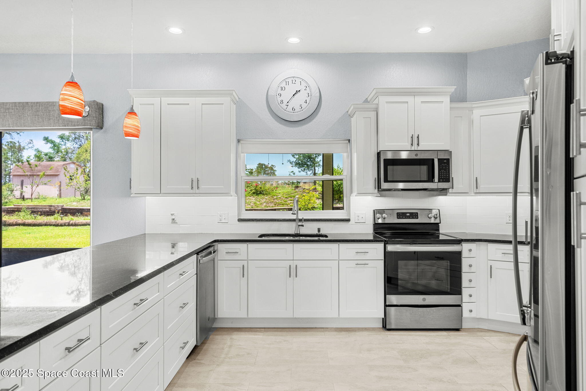 2022 kitchen with granite counters, stainless appliances, and subtle elegance